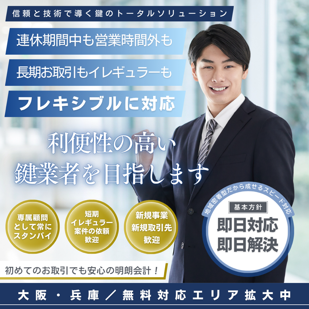 管理されているユーザー様が急な鍵のトラブルに直面した際や、即座に対応できる信頼性の高い鍵業者が必要となる場合において、